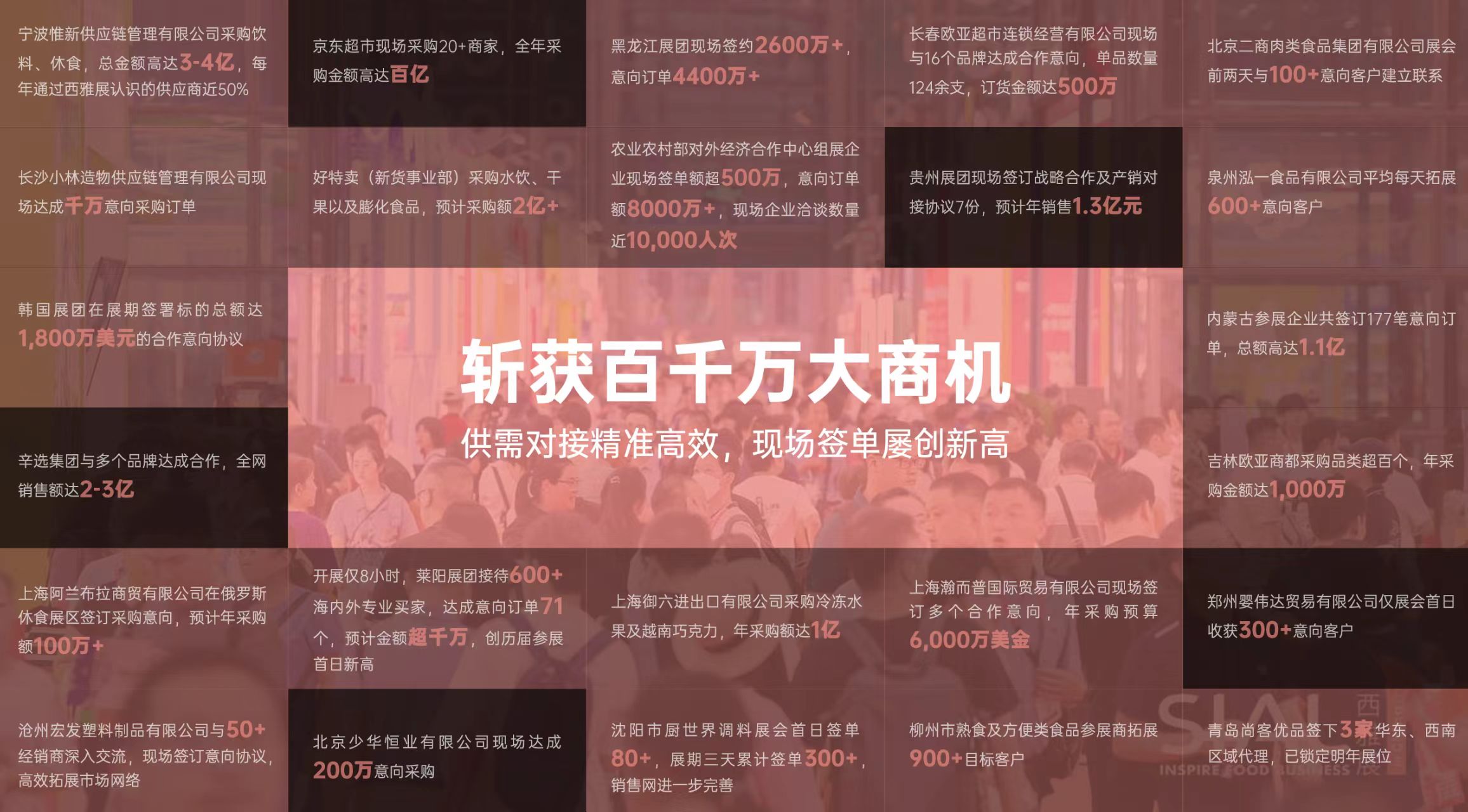 為什么2026 SIAL西雅國際食品展值得您押注?1. 全球資源匯聚,打造高效商貿平臺展覽面積達20萬㎡,匯聚來自75個國家和地區的5,000+展商 吸引125個國家和地區的180,000+專業買家,其中近60%為采購決策者 覆蓋京東、天貓、永輝、盒馬、山姆、便易星、胖東來、長春歐亞等全渠道中高端買家,以及全球進口商、經銷商 2.精準商貿對接,訂單轉化看得見Match Me供需對接服務:提前鎖定高意向買家,現場高效洽談 2025年展會商貿成果: 湖北展團多個企業累計簽單3,000萬元,海外訂單占比35% 黑龍江展團企業現場簽約超2,600萬元 煙臺天鷺食品借展會成功開拓北美市場 |